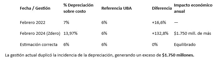 La gestión actual duplicó la incidencia de la depreciación, generando un exceso de $1.750 millones.