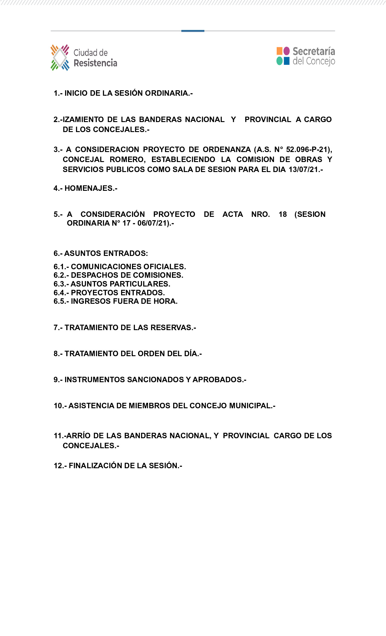 Estos son los temas y proyectos a tratarse en la sesión de este martes 13 de julio de 2021.-