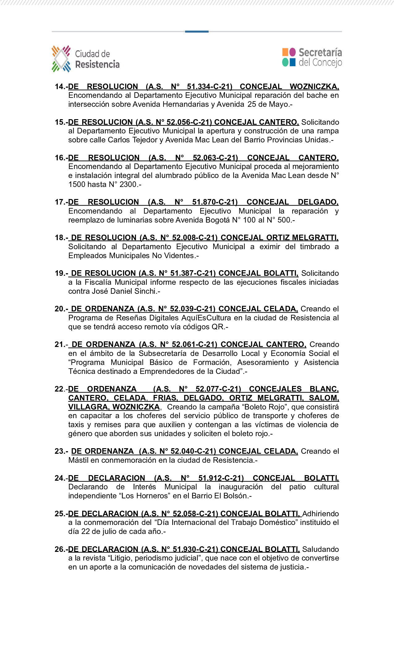 Sitio Oficial-Comunicación institucional de la gestión legislativa del concejal Fabricio Bolatti con los vecinos y vecinas de la ciudad de Resistencia