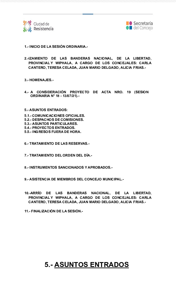 Estos son los temas y proyectos a tratarse en la sesión de este martes 03 de agosto de 2021.-