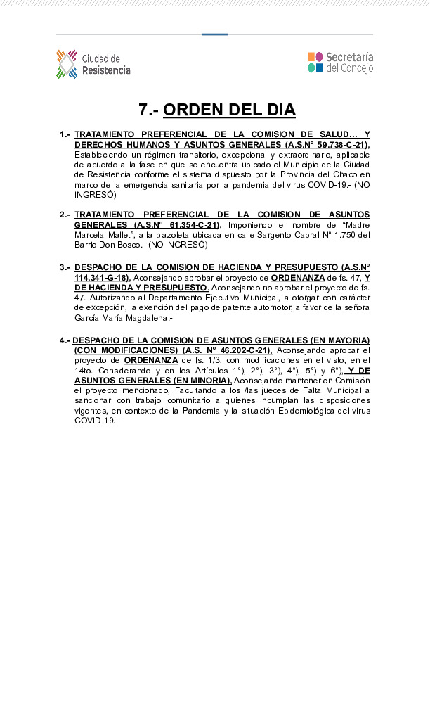 Estos son los temas y proyectos a tratarse en la sesión de este martes 31 de agosto de 2021.-